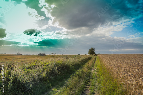 © Konrad Kerker, Obraz premium Fields and meadows during harvest
