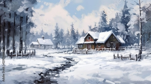 © 여진 양, Naklejka premium fields and mountains covered with snow