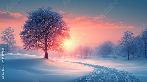 © 여진 양, Naklejka premium fields and mountains covered with snow