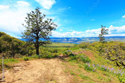 © Iriana Shiyan, Fototapeta premium Fields, hills, river and mountains landscape.