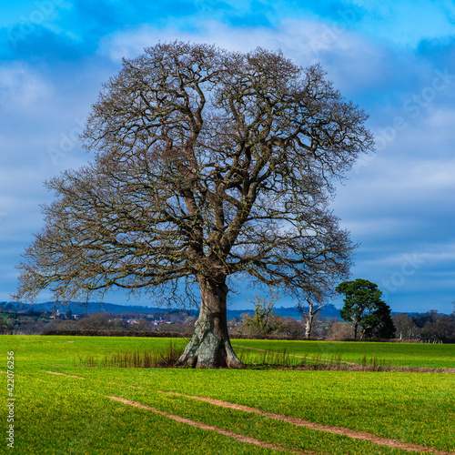 © Maciej Olszewski, Fototapeta premium Fields, meadows and old trees, English Village, Devon, England