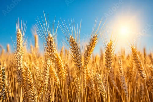 Fototapeta premium Fields of golden wheat swaying under the bright sun during the midday in summer