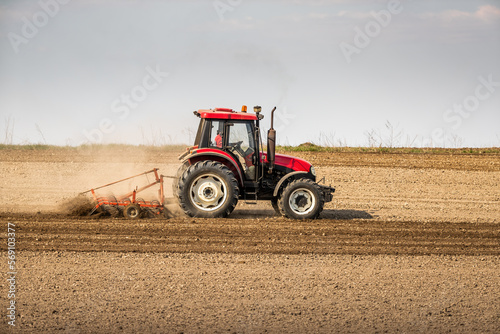 © oticki, Obraz premium Fields of possibility, tractor readying the earth for a bountiful harvest