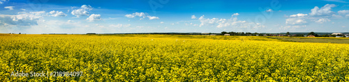 Fototapeta premium Fields of Rape in Bloom under Blue Sky