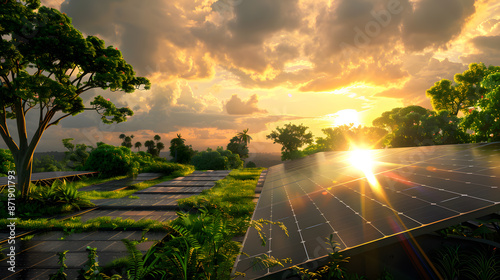 © Dmytro, Obraz premium Fields of solar panels and systems to produce green electricity. AI Generated