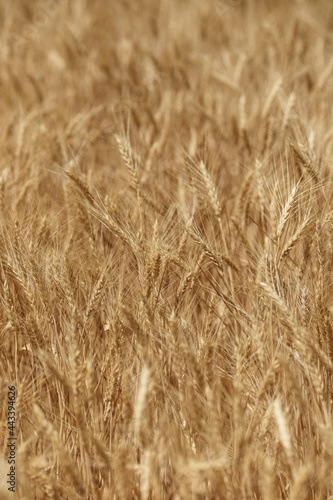 © pridneprovskiy, Fototapeta premium Fields of wheat at sunset. Golden Ears of Ripe Wheat