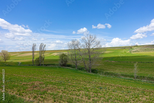 Obraz premium fields planted with agricultural products and natural nature scenery,
