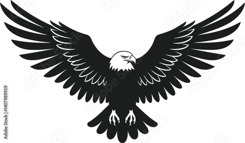 © MdImran, Obraz premium Fierce Bald Eagle Silhouette Vector with Outspread Wings in Flight