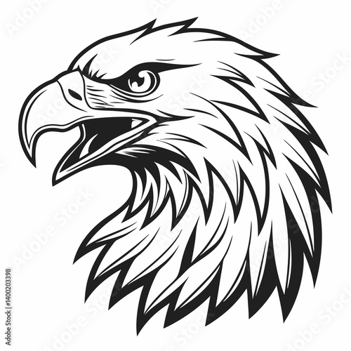 Fototapeta premium Fierce Black and White Eagle Head Vector Line Art Bird of Prey Graphic
