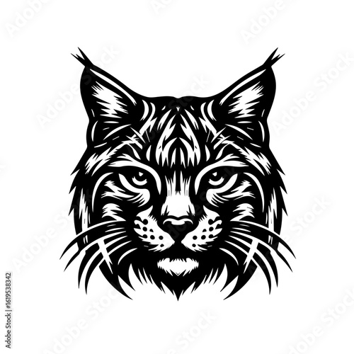 Fototapeta premium Fierce Bobcat Head Black and White Graphic.