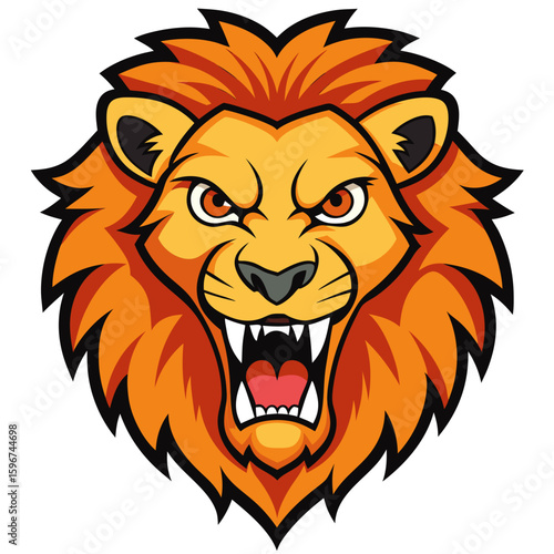 © Saikat, Naklejka premium Fierce Cartoon Lion Head Mascot Illustration.