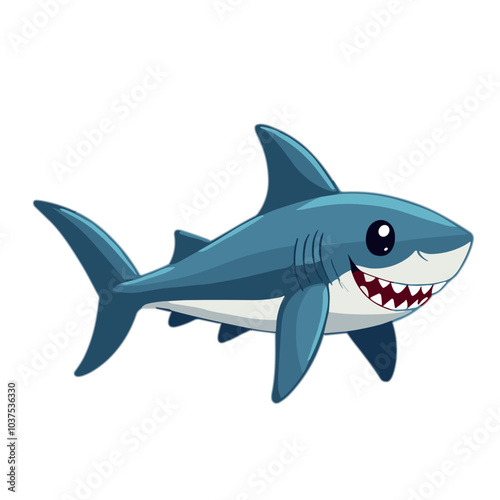 Fototapeta premium Fierce cartoon shark grinning menacingly on white background