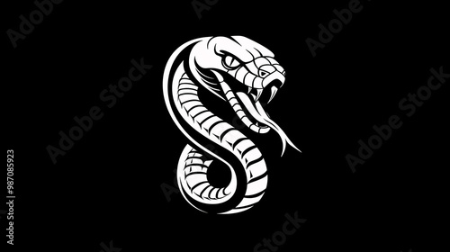 © VicPhoto, Fototapeta premium Fierce cobra logo design with fangs on black background