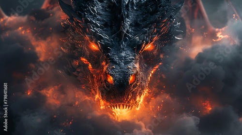 © andyaziz6, Fototapeta premium Fierce dragon head glowing eyes and open mouth