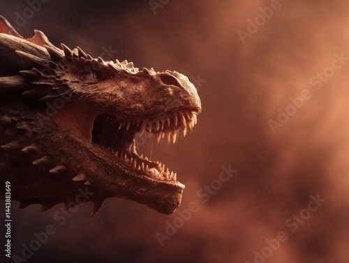 Obraz premium Fierce dragon head portrait against a dramatic backdrop.