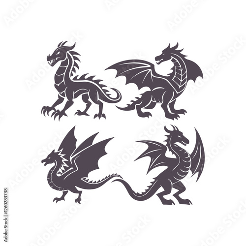 Obraz premium Fierce Dragon Silhouettes Isolated Vector Illustration Set