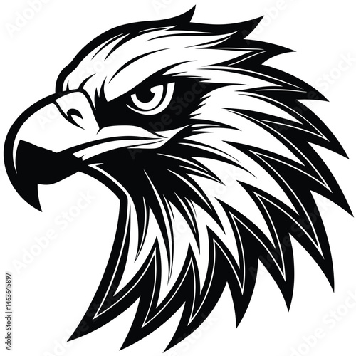 © mdanamulislamopu, Obraz premium Fierce Eagle Head Logo Vector – Bold Black and White Mascot Design