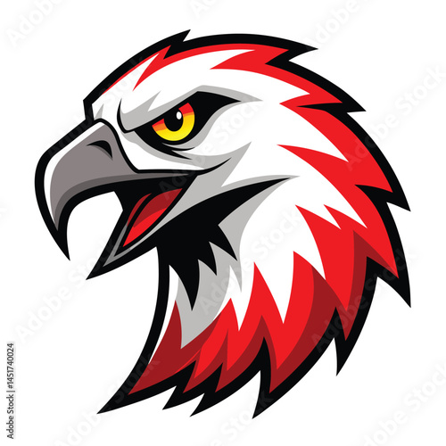 © Jannatul, Obraz premium Fierce eagle head showing dynamic sharp features, featuring a red and white color scheme
