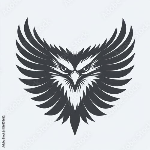 © lestari, Fototapeta premium Fierce eagle head with outstretched wings, monochrome vector illustration.