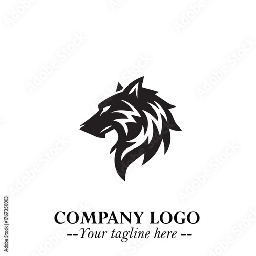 Fototapeta premium Fierce Head of Wolf Logo Symbol in Black on White Background with Bold Minimalist Modern Design