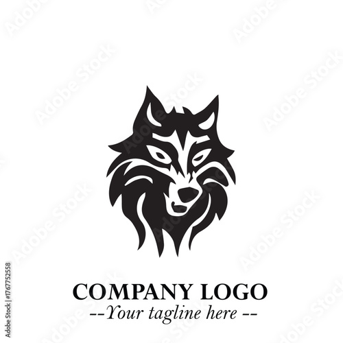 Fototapeta premium Fierce Head of Wolf Logo Symbol in Black on White Background with Bold...
