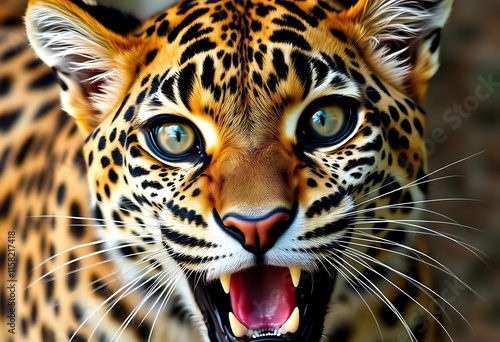 © anomalicreatype, Obraz premium Fierce Jaguar Closeup Vibrant Spots Intense Gaze Wild Cat