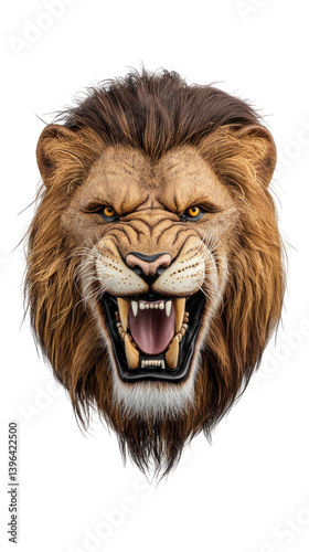 © Kittichet, Obraz premium Fierce Lion Head with Intense Expression and Dramatic Mane