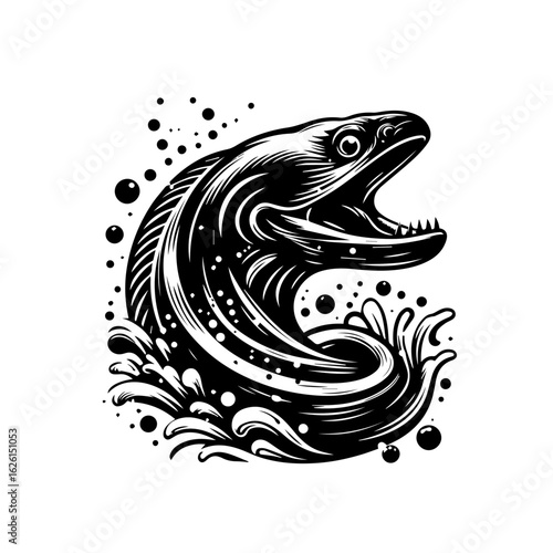 Obraz premium Fierce Moray Eel Emerging from Water.