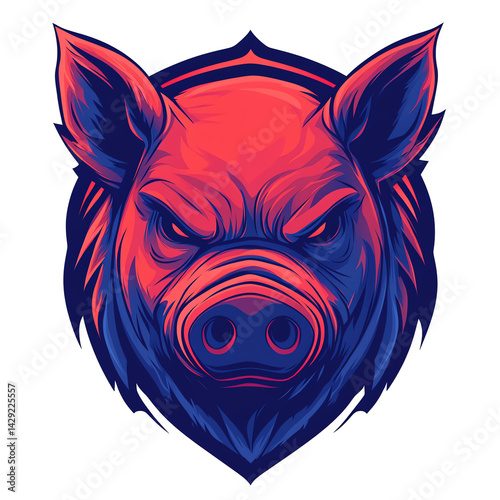 © tohin, Obraz premium Fierce pig head illustration with glowing red and blue colors on transparent background