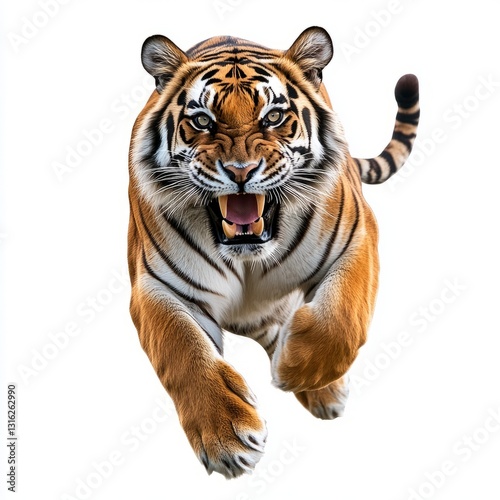 © William, Fototapeta premium "Fierce Running Tiger with Dynamic Motion and Powerful Expression"