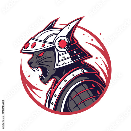 © Nahid, Fototapeta premium Fierce Samurai Dog Mascot Logo in Red and White Armor