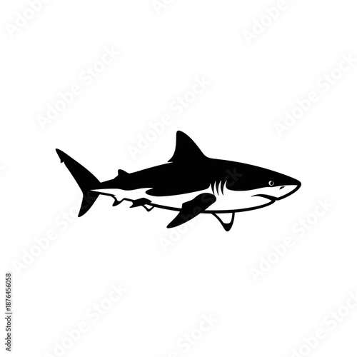 Obraz premium Fierce Shark Silhouette on White Background