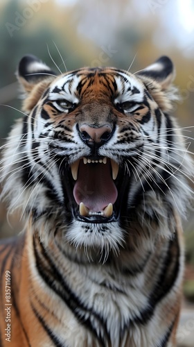 © LookChin AI, Fototapeta premium Fierce Tiger Baring Its Fangs in a Closeup Portrait