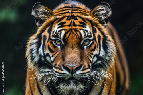 Fototapeta premium Fierce Tiger Close-Up on Black Background
