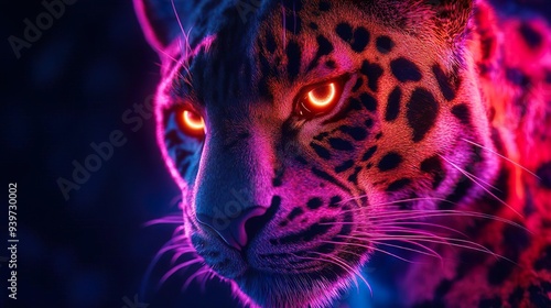 © Biplob, Obraz premium Fierce tiger face illuminated by vibrant neon lights in images