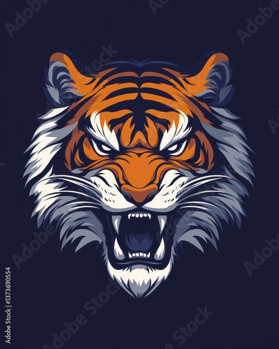 Obraz premium Fierce tiger head design featuring bold colors and dynamic expression in...