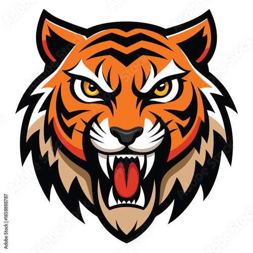 © Crazy Dreamy Boy, Fototapeta premium Fierce tiger head mascot logo design featuring sharp teeth and aggressive growl