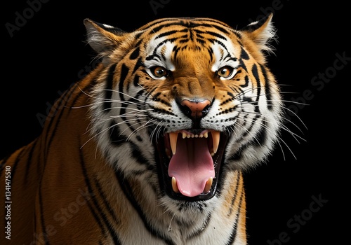 © AdityaGM, Fototapeta premium Fierce Tiger Portrait Against Black Background. Generative Ai
