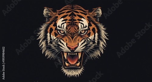 Fototapeta premium Fierce tiger roaring with intense gaze in dynamic front view tattoo style