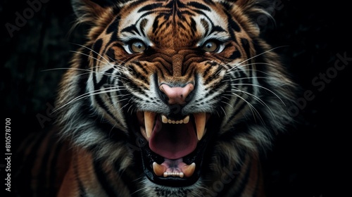 © Balaraw, Naklejka premium Fierce tiger roaring with open mouth