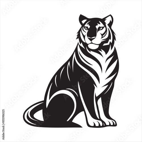 © Khalid, Obraz premium Fierce Tiger Vector Illustration - Black and White Roaring Tiger Design for Logos, Tattoos, and Art