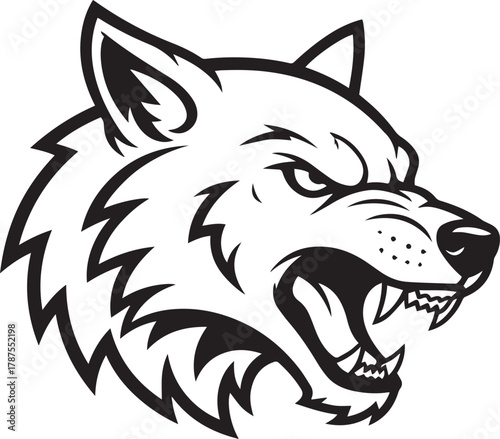 Obraz premium Fierce Wolf Mascot Logo – Black and White Vector Illustration for Sports and...