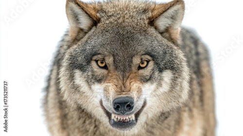 © Thanyaporn, Fototapeta premium Fierce Wolf Staring Intently with Snowy Background Natural Habitat