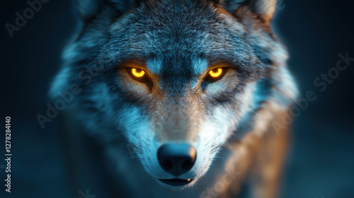 Obraz premium Fierce wolf with glowing yellow eyes and detailed fur