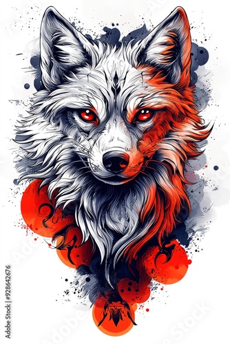 © Tung's companion, Naklejka premium Fierce Wolf with Red and Black Watercolor Splatter
