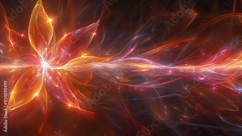 © xeionise, Fototapeta premium Fiery Abstract Flower with Glowing Energy Trails..