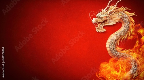 © JCreative, Obraz premium Fiery abstract of a mythical dragon with a diamond encrusted ornate body design The dragon s powerful spiraling form is surrounded by swirling flames and a radiant vivid color palette