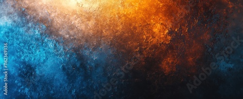 © khamz, Obraz premium Fiery and Icy Abstract Texture: A Dramatic Contrast in Blue and Orange Hues