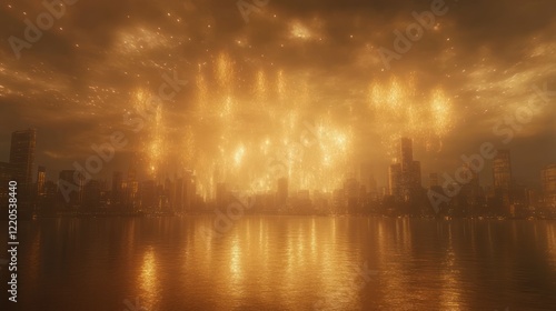 Naklejka premium Fiery apocalyptic cityscape reflection, night