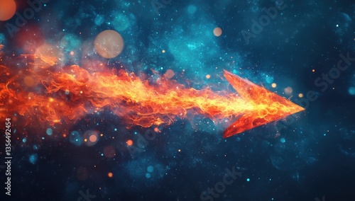 Fototapeta premium Fiery arrow pointing forward in a cosmic backdrop